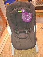 Fietsstoel gemakkelijk afneembaar. Max. 22Kg. Kan beetje gekanteld worden en de voetsteuntjes kunnen ook in de hoogte verregelen.