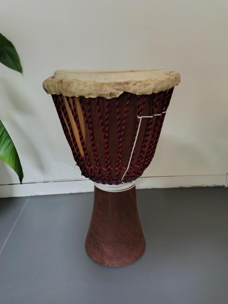 Djembee met draagtas. Diameter 31 m, hoogte 60cm. Alles nog in perfecte staat enkel ophalen, geen koerierdiensten.