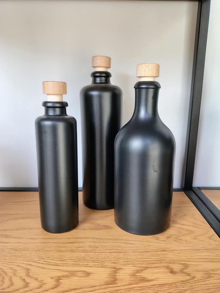 3 email zwarte flessen, hoogte 24 cm. Prijs voor 3 samen