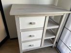 Compacte tafel met 3 schapjes en schuifjes. Er kan net een verzorgingskussen op. Afmetingen bxhxd 75x85x47cm, tafelblad steekt een
