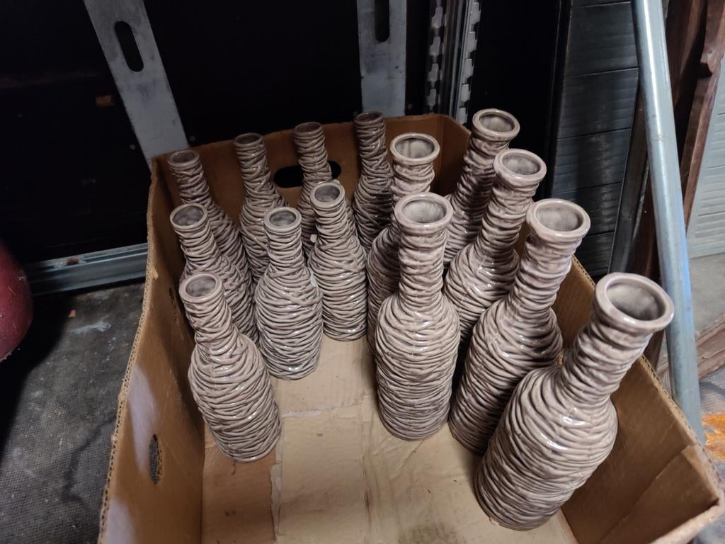 Bloempotjes, theelichthouders, mandjes, bordjes, beeldjes.... Twee bakken niet inbegrepen. Dus zelf dozen meenemen, de dozen mag je er wel bij hebben op te halen in gierle