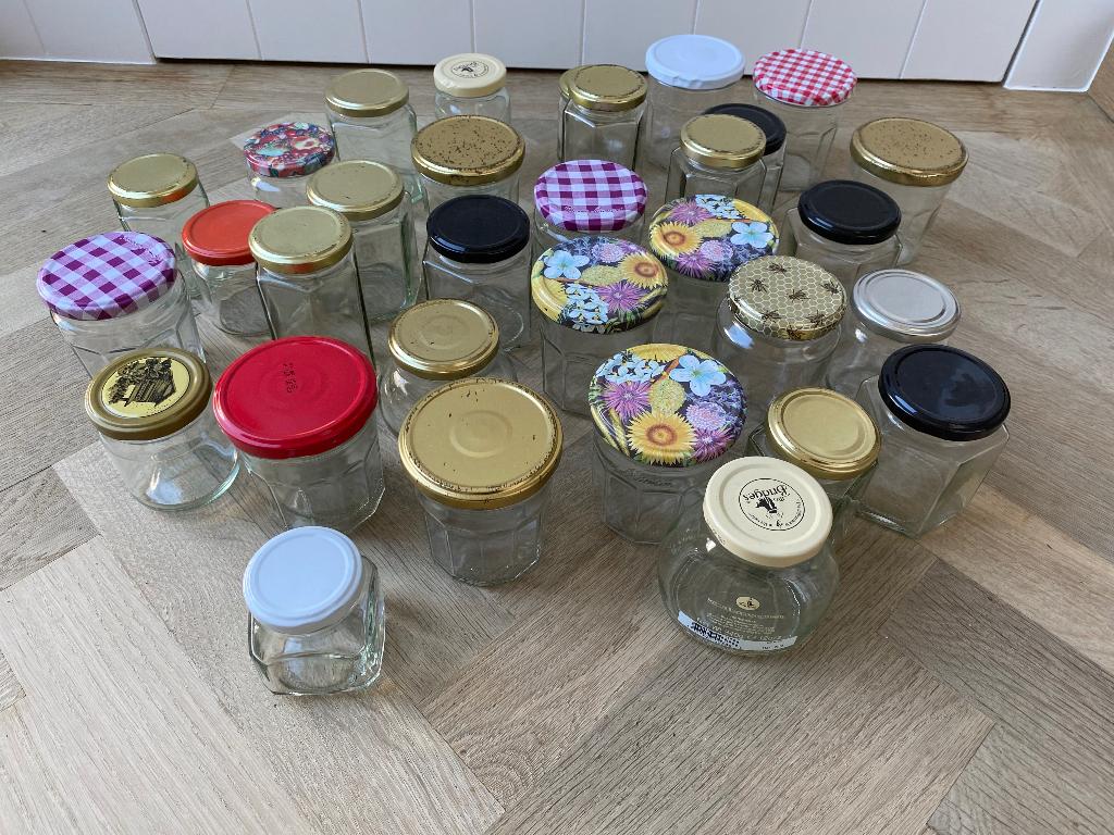 Glazen bokalen met deksel.