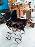 Deze antieke bruine kinderkoets is in zeer goede staat. Zoals je op de foto’s kan zien heb ik haar zelf gebruikt om enkele van mijn antieke poppen in te plaatsen (poppen en andere artikelen zijn niet