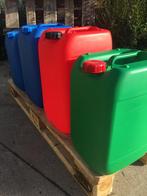 Rode bidons 25 liter inhoud. Groene bidons 20 liter inhoud. Blauwe bidons 20 liter en 25 liter inhoud. Bidons zijn mooi gekuist en gespoeld, klaar voor hergebruik. Inclusief schroefdop. Ongeveer 60