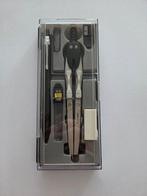 Nieuwe geometrieset: stevige doos met een nauwkeurig metalen kompas met micrometrische schroef, reservesnoeren, vulpotlood, gum, s