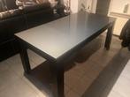Table à manger couleur anthracite, brillante. Dimensions : 90 x 180 cm. Traces d’usure. Les pieds présentent des décollements du r
