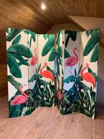2 kamerschermen met flamingo motief. Hier en daar gebruikssporen maar zeer decoratief! 40 Euro/stuk of 70 euro voor de 2