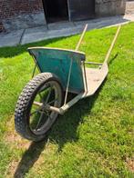 Ijzeren kruiwagen (oud model) met lange handvaten. Deze is in zeer goede staat, enkel de band moet vernieuwd worden (hierop kan er