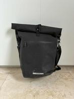 Zwarte fietstas van 30-40l al even in gebruik en wat gebruik schade op perefct waterdicht ideaal voor woon werk verkeer en mogelij