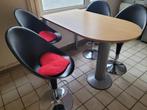 Hoge keukentafel met 4 in hoogte verstelbare kuipstoelen. Set in één geheel verkoopbaar