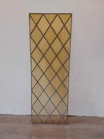'venster'-raam bestaande uit geruite stukken glas gevat in loodlijsten. Dit glasraam staat in een tussendeur. Afmetingen