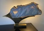 Prijs op aanvraag grote plak agaat op vergulde stalen sculptuur met verlichting uniek stuk van de belgische beeldhouwer christian