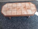 Stevige salontafel met keramische tegeltjes, afwerking in hout. Afmetingen : lengte = 112 cm; breedte = 51 cm; hoogte = 41 cm de s