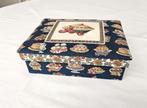 Unieke handgemaakte theedoos (nrs 14-17) theedoos, bekleed met mooie stof. Het deksel is bovenaan gewatteerd. Zeer stevige doos be