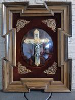 Antieke kruisbeeld onder bolglas in prachtige frame