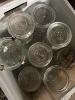 Tiental weckpotten. Met sluiting, clips en mogelijk enkele goede rekkers. Bokalen in goede staat. Mag weg tegen elk aannemelijk vo