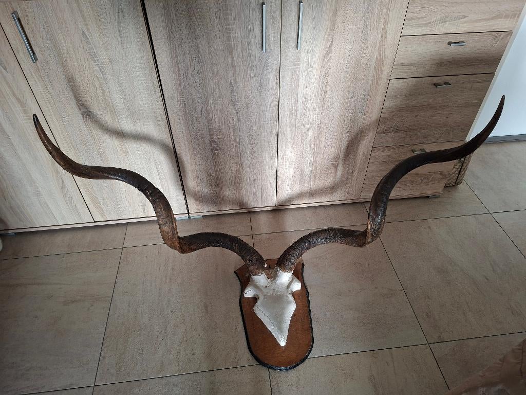 Mooie kudu/koedoe horens op hout gips moet een beetje bijgewerkt worden zelf ophalen in boechout
