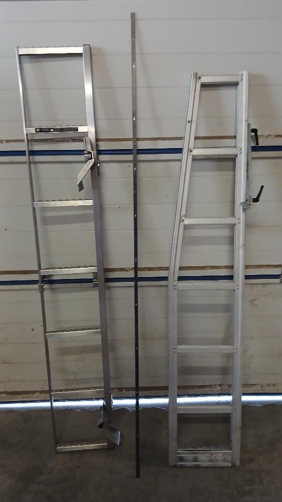 Twee nieuwe ladders van bestelwagen vanwege niet bruikbaar linkse ladder is volledig van inox rechtse is een aluminium ladder bestelwagen , ladders , roestvrij , nieuw , fort ,