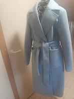 De lengte van de jas is 1.05 M , lichtblauw , men kan deze zelf wassen , in goede staat , met 2 sjaals