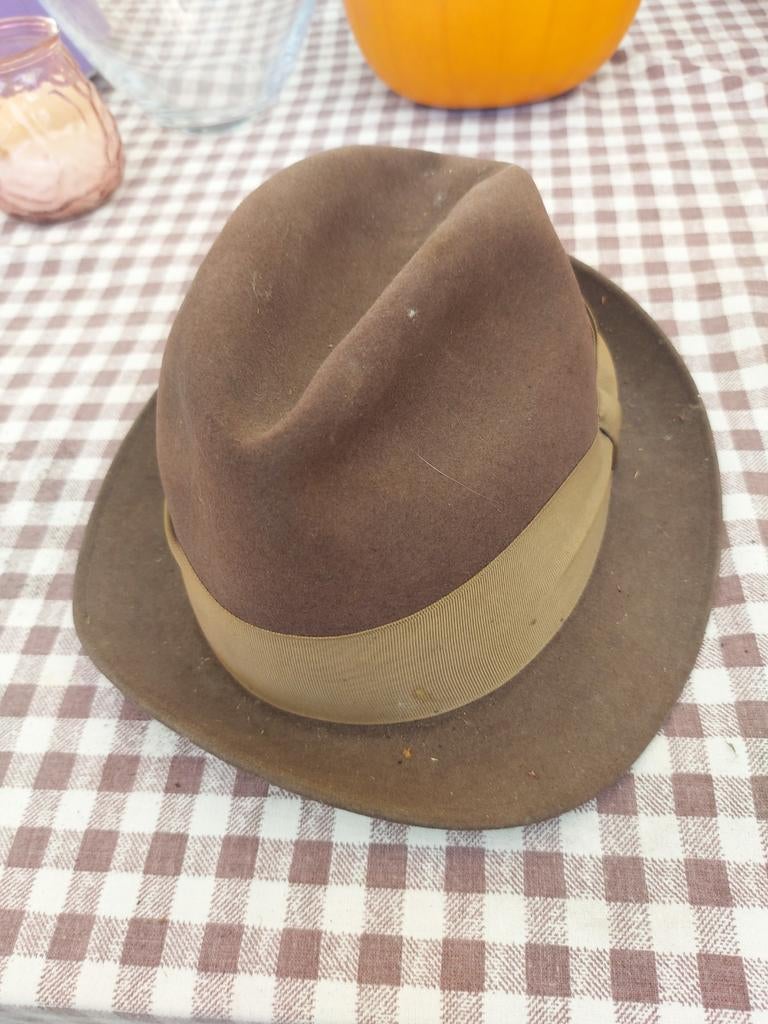 Dit is een vilten hoed in fedora- of verkennersstijl, vaak geassocieerd met een vintage of klassieke uitstraling. Maat 57