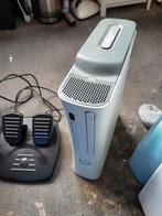 Console met 2 controllers, kabels, stuur en pedaalcontroller en 2 games. Docking station voor controllers.