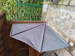 Zonnescherm lengte 160 cm op hoogte 165 cm, schuin afgaand tot 95 cm. Ik verkoop dit omdat het niet meer wordt gebruikt wegens verbouwingen.