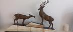 Bronzen herten op albast sokkel met groene marmer, periode art deco