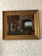 Schilderij bakstenen boerderij schilderij getekend l.van de velde , afmeting b103 x h83 decoratief, mooie kaderomlijsting