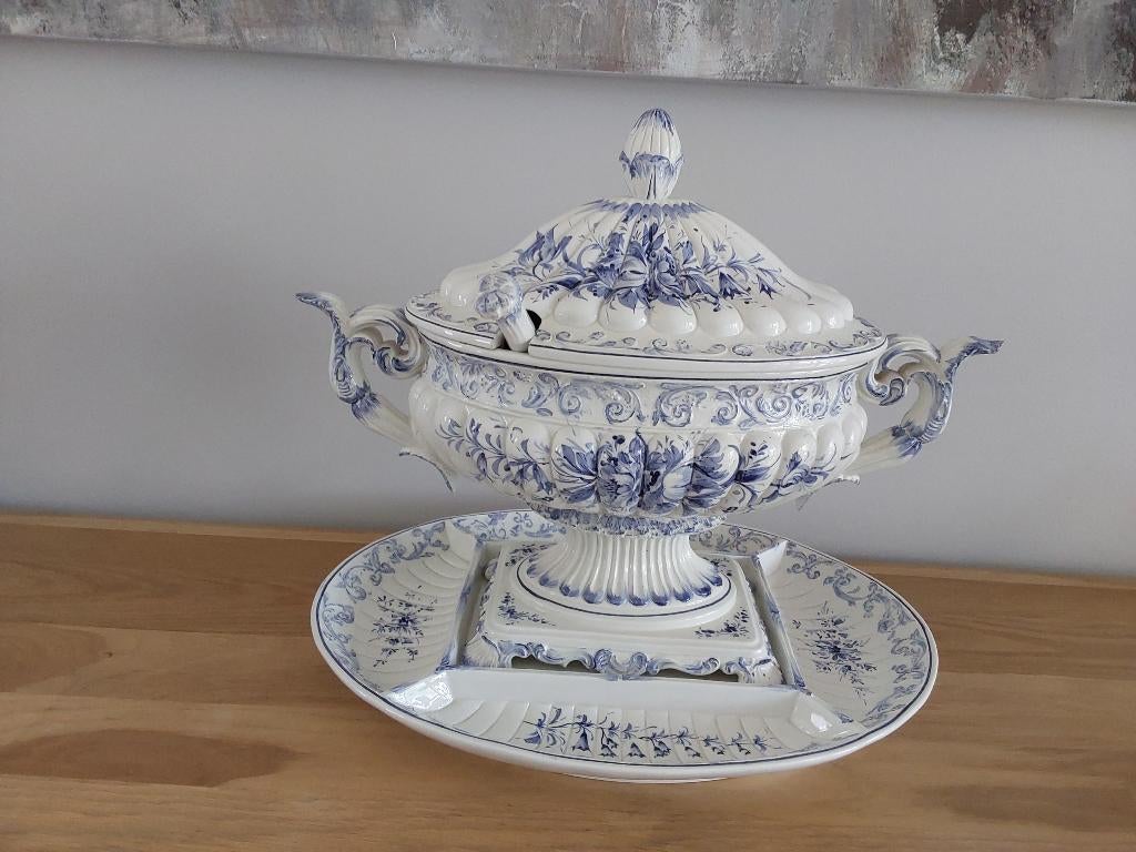 Licht bruine vaas met schaal. 7 Euro. Het kastje is ook te koop voor 15 eurol