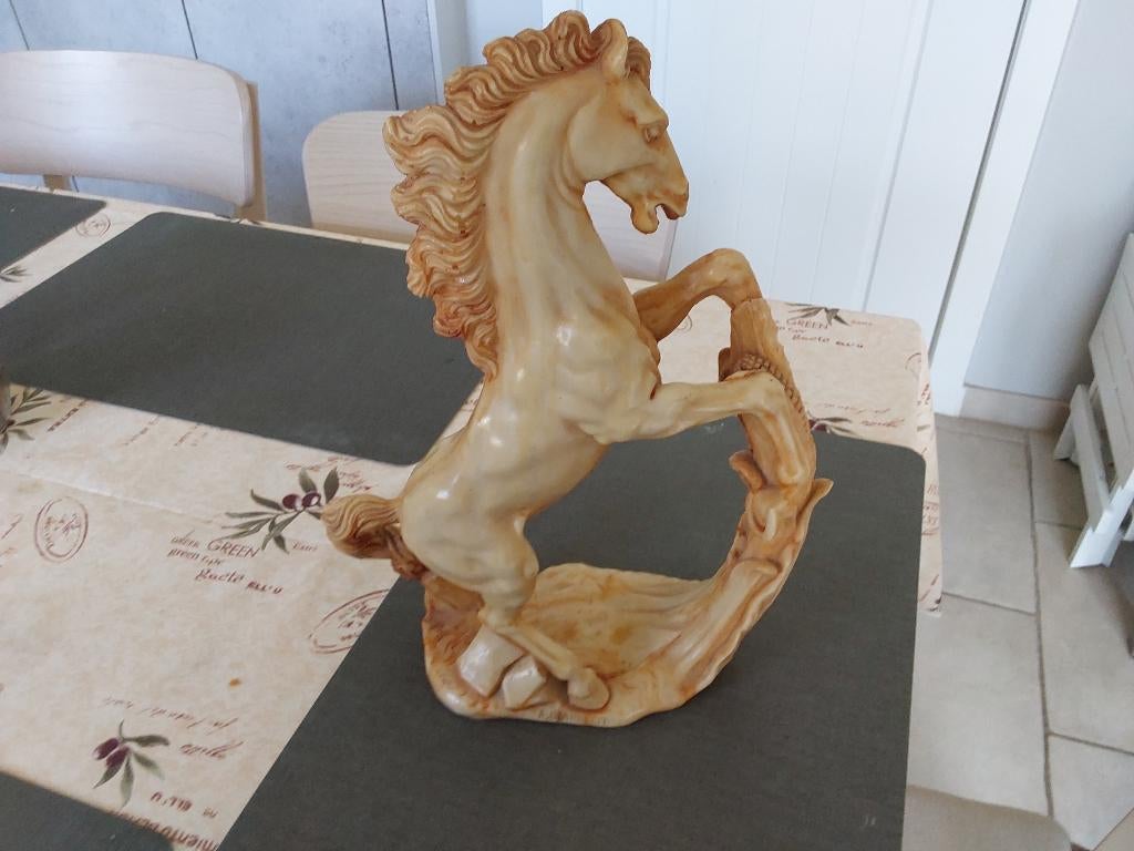 Stijgend paard in hars. Amber kleur. Hoogte 35