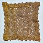 Religieus gouddraad kelkkleedje 14x14 cm prachtig kantwerk in geelgoud zijde getwijnd met flinterdun ijzerdraad ongeveer 100 gram