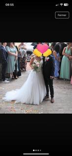 Robe de mariée ivoire, taille 36 avec traîne. Achetée chez ongi cérémonie à 1760€. Pour info, je mesure 1m60 et je porte des