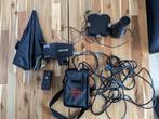 Flitser met toebehoren. Transmitter batterij deur is een beetje stuk. De instel lamp werkt nog maar de flitsbuis moet vervangen wo