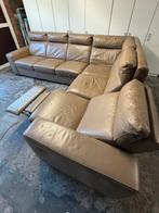 Lederen hoeksalon met relax kleur taupe