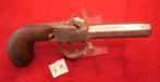 Reliek van een percussiepistool uit de 19de eeuw, voorlader. De loop is achthoekig van vorm. Lengte van de lopen: 55 mm.