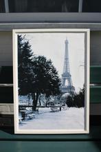 Zwart/wit poster in witte kader. Foto met zicht op de eifeltoren. Afmetingen 74 cm hoog en 52 cm breed.