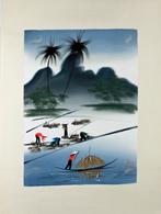 8 schilderijtjes op zijdepapier afkomstig uit vietnam. Afmetingen schilderijtjes: ongeveer 22cm x 32 cm grootte volledig : ongev. 32Cm x 45cm