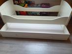 Eenpersoonsbed met schuif die je kan gebruiken om spullen op te bergen of je kan er een extra matras in leggen voor extra slaapple