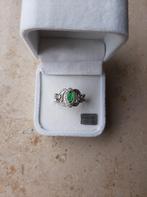 Zilveren ring gemerkt "finland", modern, opengewerkt met groen doorzichtig steentje (kristal of ander) / meerdere juweeltjes en kado-ideetjes: armbandje, ketting, oorbellen, broche, een mooiZo goed als nieuw Ophalen of Verzenden