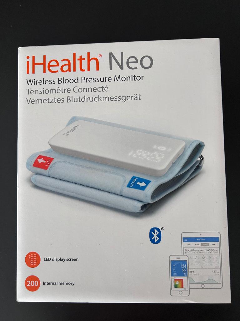 Draadloze bloeddrukmeter voor de bovenarm van ihealth. Heel handig om mee te nemen op daguitstap of vakantie. Maar paar keer gebruikt.