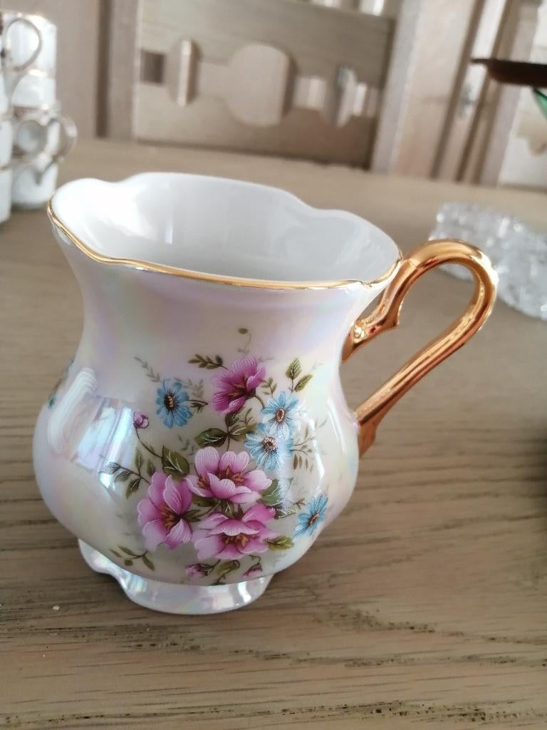 mooi porceleinen vaasje - kannetje met nummer en stempel