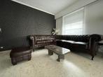 Chesterfield donker bruin zetel + poef in goede staat. Prijs bespreekbaar!!! Originele prijs 2000 euro. Chesterfield brun foncé fa