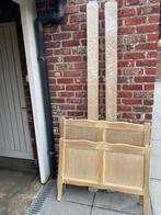 Houten bed. Eik. Zonder matras en latten bodem.afmetingen lengte zijvlakken 2 meter en breedte totaal hoofdstuk 96 cm en voor matras 93 cm.