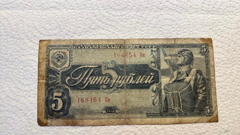 Kenmerken van dit biljet afbeelding: een piloot met een parachute aan de rechterkant, vaak aangeduid als het "vlieger-type". Historiek: uitgegeven door de staatskas van de ussr tijdens de pe