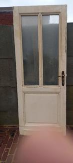 Dit zijn 2 zware oude volhouten paneeldeuren met glas. 1 Deur is met helder glas en de andere deur is met geslepen glas afmetingen
