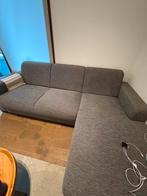 Moderne grijze hoekbank met rechterzijde. Strakke vorm en stevige bekleding in geweven stof. De kussens zijn vast en geven goede o