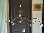 Grand lustre/luminaire à 10 branches. Très original grâce à ses courbes biscornues. Métal (laiton) et plastique. Un des minis abat