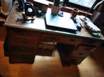 130x60x75 de haut, s’agit d’un bureau ancien de type “bureau ministre / bureau à caissons”, fin xixᵉ – début xxᵉ siècle plateau gainé cuir • 9 tiroirs • poignées en laiton • pieds à plynthes • structu