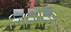 Set van 3 stoelen voor in de tuin hebben nat gestaan, dus canvas is verkleurd. Groen ipv blauw, witte poten aluminium enkele be