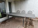 Oude tafel die overschilderd werd. 3 Bijpassende stoelen. Kan vergroot worden met extra tussenschotten , zie foto. Kan nog dienen